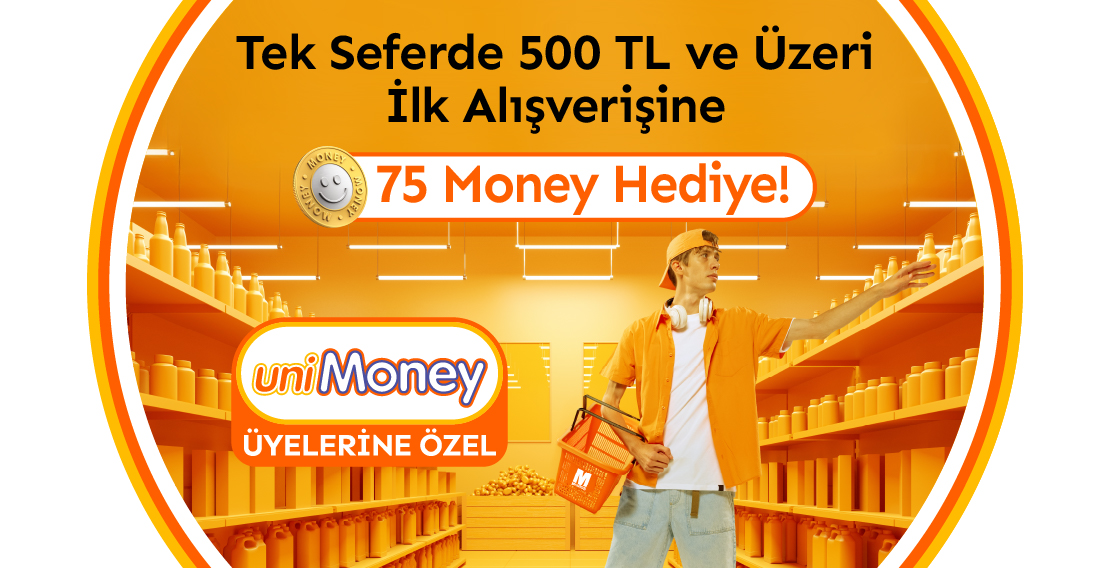 4 Şubat - 17 Aralık 2025 tarihleri arasında UniMoney üyelerine özel Money ve Money Bonus ile tek seferde Migros, 5M Migros, Migros Jet, Macrocenter, Migros Sanal Market, Migros Hemen ve Macroonline'dan yapılacak 500 TL ve üzeri ilk alışverişe 75 Money hediye edilecektir. Kampanyaya Money Mobil uygulamasından ve Migros Mobil Uygulamasından kayıt yapılabilir. Kampanyadan bir kere faydalanılabilir. Kampanya UniMoney üyelerine özeldir. Aktif öğrenciliğini sürdüren üniversite öğrencileri; Money Mobil Uygulaması'nda Profil menüsünde yer alan UniMoney sekmesinden, Migros Hemen ve Migros Sanal Market'te 'Hesabım' sekmesinde yer alan UniMoney alanından, Money web sitesi money.com.tr adresinde yer alan 'Kart ve Kulüplere Başvur' sekmesi altında yer alan UniMoney alanından T.C. Kimlik Numarasını ve E-Devlet'ten alınan barkodlu öğrenci belgesinde yer alan barkod numarasını başvuru formuna girerek üyeliğini gerçekleştirebilecektir. 500 TL harcama tutarına alkol, sigara, TL yükleme, elektrikli & elektronik ürünler, yılbaşı sepeti, Ramazan kolisi, Milli Piyango bileti, Kurban, altın alımı ve beyaz eşya dahil değildir. Kazanılan Money'ler 2 iş günü içinde karta yüklenecek ve 31 Aralık 2025'e kadar Migros, 5M Migros, Migros Jet, Macrocenter, Mion, Migros Petimo, Migros Hemen, Migros Sanal Market, Migros Yemek, Macroonline, Mion Online ve Petimo Online'da kullanılabilecektir. Money özellikli Yat Kart ve Otel Restoran Kartlarda geçerli değildir. UniMoney üyeliği onaylanmamış Money üyeleri kampanyaya dahil değildir. Yeniden satış amaçlı toplu satın alımlardan ve aynı fişte aynı 15 adet ve üzeri ürün alımlarından Money kazanılamamaktadır. Eksik veya yanlış kişisel bilgi paylaşılmış Money üyelikleri kampanyaya dahil değildir