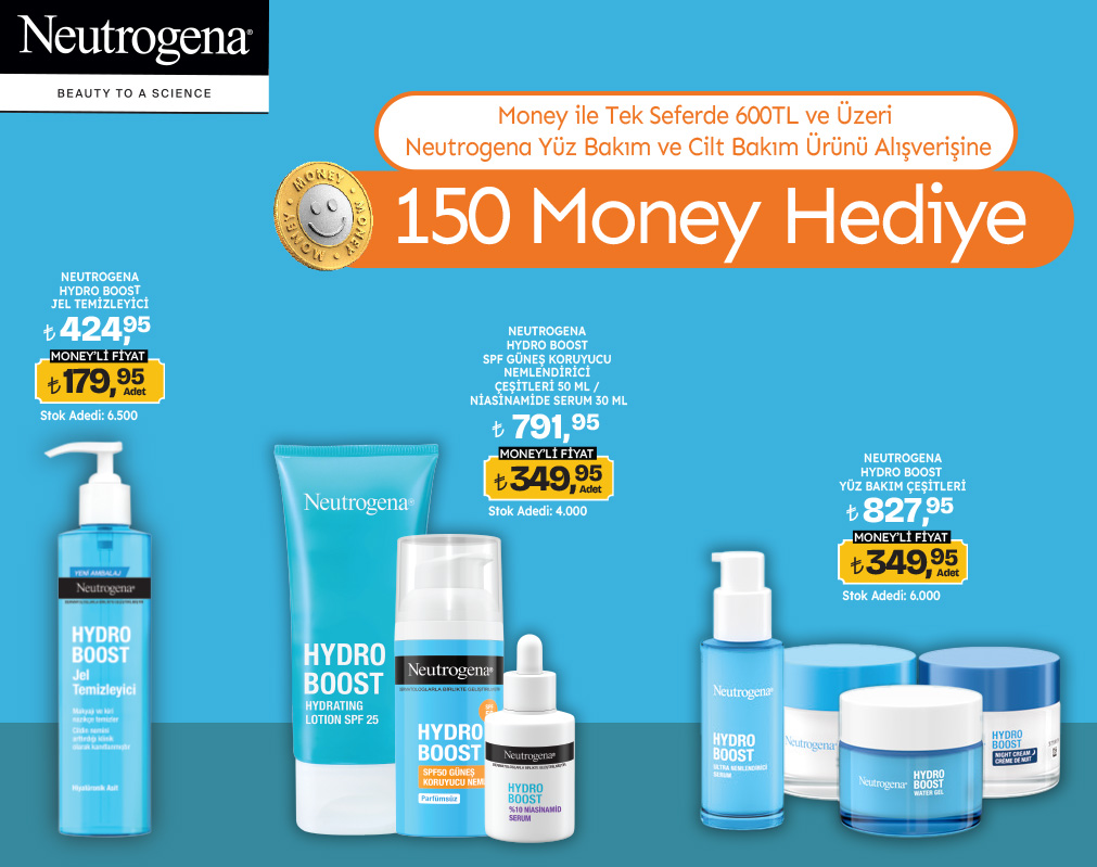 26 Mart – 15 Nisan 2026 tarihleri arasında Migros, 5M Migros, Migros Jet mağazalarından, Migros Sanal Market’ten veya Migros Hemen’den Money ve Money Bonus ile yapılacak tek seferde 600 TL ve üzeri Neutrogena yüz bakım ve cilt bakım ürünü alışverişine 150 Money hediye edilecektir. Kazanılan Money’ler 2 gün içerisinde yüklenecek ve 30 Haziran 2026 tarihine kadar kullanılabilecektir. Kampanyadan yalnızca Money ve Money Bonus üyeleri yararlanabilir. Yeniden satış amaçlı toplu satın alımlar (kampanyaya dahil bir ürünün bir fişte 15 adet ve üzerinde satın alınması) ve eksik ve yanlış bilgi paylaşılmış Money üyeleri kampanya kapsamına dahil değildir. Kampanya, Money özellikli Yat Kart ve Otel Restoran Kartlarda geçerli değildir. Bir müşteri bir kampanyadan en fazla 5000 Money kazanabilmektedir ve 1 Money 1 TL değerindedir.