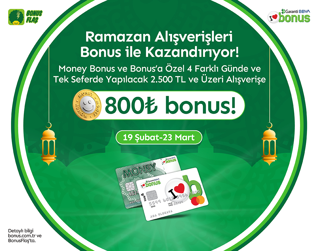 19 Şubat - 23 Mart 2026 tarihleri arasında farklı günlerde ve tek seferde yapacağınız dördüncü 2.500 TL ve üzeri alışverişlerinize 800 TL bonus hediye edilecektir. Kampanya, Migros, 5M Migros, Migrosjet, Macrocenter , Petimo ve Mion mağazalarından veya Migros Sanal Market , Migros Ekstra, Migros Hemen, Macroonline, Miononline, Tazedirekt sanal mağazalarında geçerlidir. Kampanya kapsamında ilk harcamadan önce, BonusFlaş’tan HEMEN KATIL’ın tıklanması gerekmektedir. Kampanya baremine, kayıt olunduktan sonra gerçekleştirilen harcamalar dahildir. BonusFlaş katılımı haricindeki alışverişler kampanyaya dahil değildir. Kampanya müşteri bazında olup kampanya süresince bir müşteri en fazla bir kez yararlanarak en fazla 800 bonus kazanabilir. Migros Sanal Market , Migros Ekstra, Migros Hemen ve Macroonline siparişlerinde teslimat tarihi en geç 23 Mart 2026 olmalı, ön provizyon işleminin provizyona dönmesi gerekmektedir. Teslimat sırasında net ödeme tutarı minimum 2.500 TL olan siparişler bonus kazanabilecektir. Kazanılan Bonus'lar 31 Mart 2026 tarihinde kartınıza yansır ve 1-30 Nisan 2026 tarihleri arasında bonus işyerlerinde kullanılabilir. Kullanılmayan bonuslar 1 Mayıs 2026 tarihinde geri alınacaktır. Kampanya sistemsel olarak Bonus ekipleri tarafından açılacaktır. Sepete ürün eklendikten sonra, ödeme sayfasında MoneyPay cüzdanda Masterpass'e kaytılı olan Garanti Bonus kredi kartınızla yapacağınız ödemeler kampanyaya dahildir. MoneyPay'e ayrıca yüklenen bakiyeler ve yapılan işlemler dahil değildir. Moneypay'e ayrıca yüklenen bakiyeler ve yapılan işlemler dahil değildir. Kampanya alışverişlerine alkol ve tütün ürünleri, TL yükleme, elektronik satın alımları ve dijital oyun kodları satın alımı dahil değildir. Migros Toptan alışverişleri kampanyaya dahil değildir. Kapıda ödeme işlemleri kampanyaya dahil değildir. Moneypay ile yapılan alışverişler kampanyaya dahil değildir. QR ile yapılan işlemler kampanyaya dahil değildir. Kampanyaya Bonus, Bonus Flexi, Flexi, Bonus Genç, Money Bonus, Paracard dahildir. Ek kartlar dahildir. Kampanyaya Altın bonus ve Bonus Business ve sanal kartlar dahil değildir. Kampanya dahilindeki işlemlerin mutlaka Garanti BBVA POS?u kullanılarak gerçekleştirilmiş olması gerekmektedir. Taksitli işlemler kampanyaya dahildir. Ödül kullanımları kampanyaya dahil değildir. Kampanya kapsamındaki ödül kazanımlarınızda iade ve iptal işlemleri dikkate alınacaktır. Garanti BBVA ve Migros kampanya koşullarını değiştirme hakkını saklı tutar.