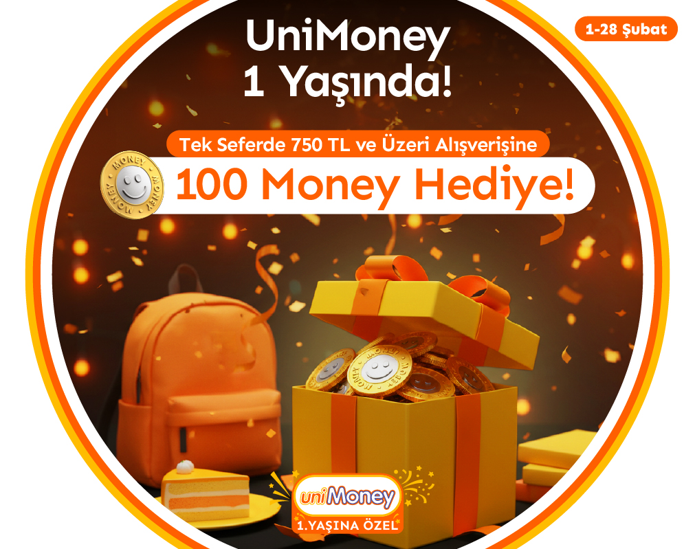 1-28 Şubat 2026 tarihleri arasında UniMoney üyelerine özel Money ve Money Bonus ile tek seferde Migros, 5M Migros, Migros Jet, Macrocenter, Migros Sanal Market, Migros Hemen ve Macroonline'dan yapılacak 750 TL ve üzeri alışverişe 100 Money hediye edilecektir. Kampanyaya Money Mobil uygulamasından, Migros Mobil Uygulamasından, UNIMONEY yazıp 5818'e SMS göndererek ya da kasiyere kampanya kayıt talebi iletilerek kayıt yapılabilir. Kampanyadan bir kere faydalanılabilir. Kampanya UniMoney üyelerine özeldir. Aktif öğrenciliğini sürdüren üniversite öğrencileri; Money Mobil Uygulaması'nda Profil menüsünde yer alan UniMoney sekmesinden, Migros Hemen ve Migros Sanal Market'te 'Hesabım' sekmesinde yer alan UniMoney alanından, Money web sitesi money.com.tr adresinde yer alan 'Kart ve Kulüplere Başvur' sekmesi altında yer alan UniMoney alanından T.C. Kimlik Numarasını ve E-Devlet'ten alınan barkodlu öğrenci belgesinde yer alan barkod numarasını başvuru formuna girerek üyeliğini gerçekleştirebilecektir. 750 TL harcama tutarına alkol, sigara, TL yükleme, elektrikli & elektronik ürünler, yılbaşı sepeti, Ramazan kolisi, Milli Piyango bileti, Kurban, altın alımı ve beyaz eşya dahil değildir. Kazanılan Money’ler 2 iş günü içinde karta yüklenecek ve 31 Mart 2026'ya kadar Migros, 5M Migros, Migros Jet, Macrocenter, Mion, Migros Petimo, Migros Hemen, Migros Sanal Market, Migros Yemek, Macroonline, Mion Online ve Petimo Online’da kullanılabilecektir. Money özellikli Yat Kart ve Otel Restoran Kartlarda geçerli değildir. UniMoney üyeliği onaylanmamış Money üyeleri kampanyaya dahil değildir. Yeniden satış amaçlı toplu satın alımlardan ve aynı fişte aynı 15 adet ve üzeri ürün alımlarından Money kazanılamamaktadır. Eksik veya yanlış kişisel bilgi paylaşılmış Money üyelikleri kampanyaya dahil değildir.